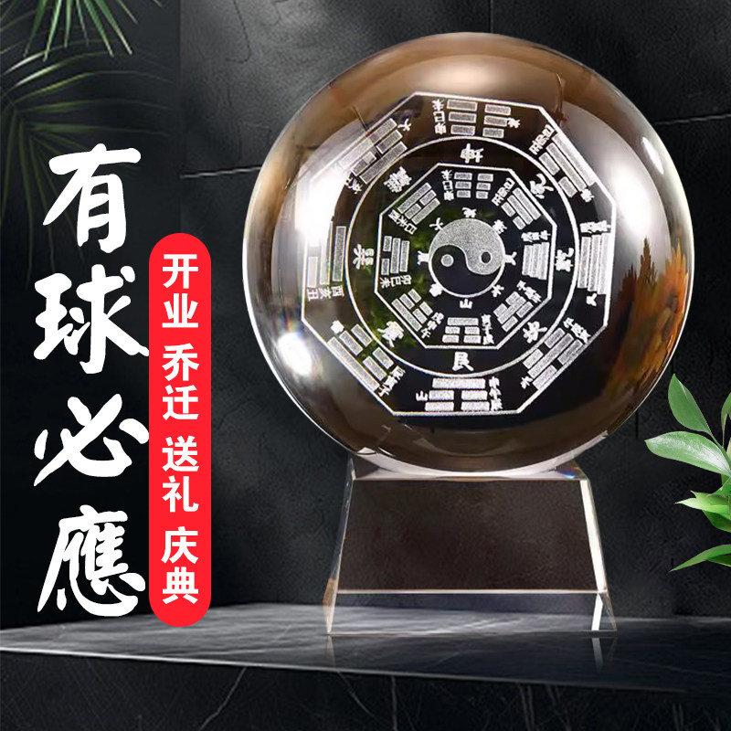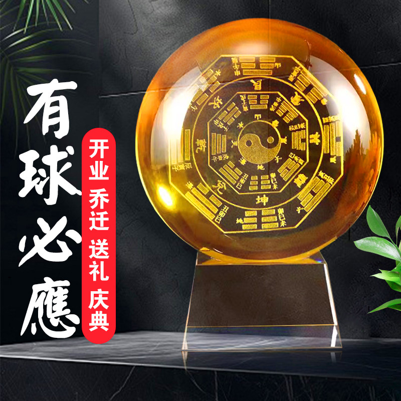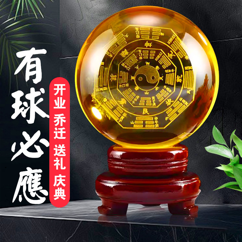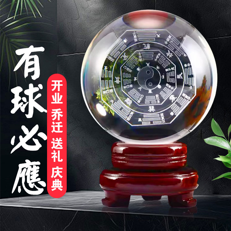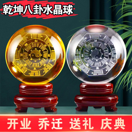 乾坤八卦水晶球摆件开业乔迁送礼客厅玄关办公桌面五行八卦风水球