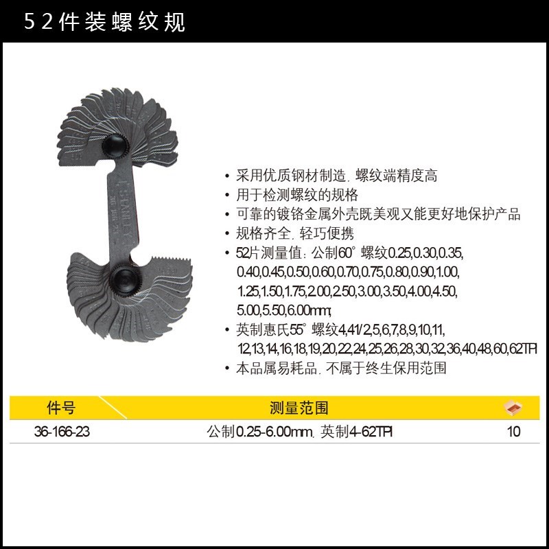 史丹利工具52件装公英制螺纹规螺纹样板 罗纹样板牙规36-166-23