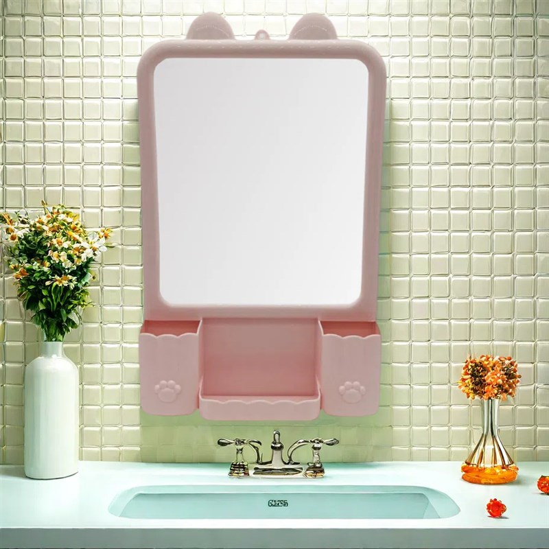 时尚爱心镜家用卫生间挂镜壁挂镜塑料镜宿舍带置物架浴室镜化妆镜