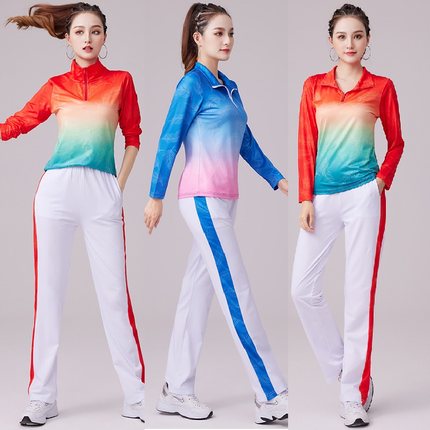 时尚广场舞蹈服装男女秋新款长袖团队服健身表演出休闲运动服套装