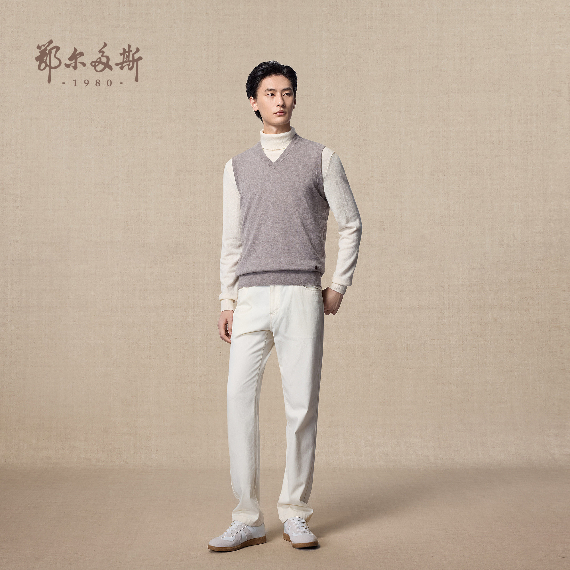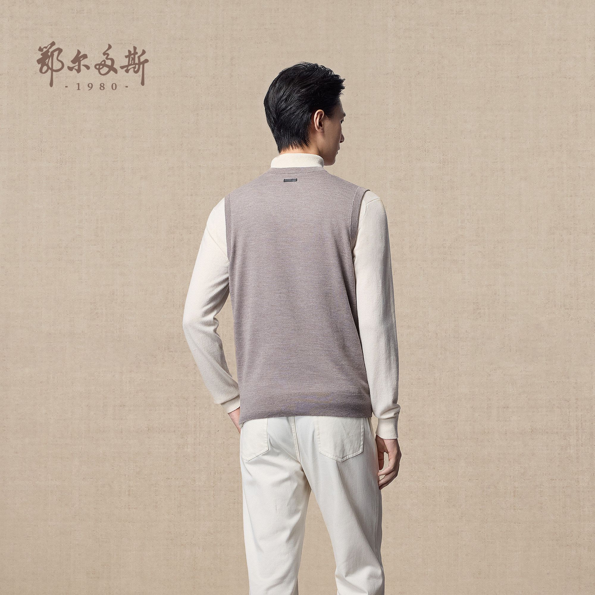 【精纺】鄂尔多斯1980 男装V领虚提羊绒背心25年秋冬新品针织衫