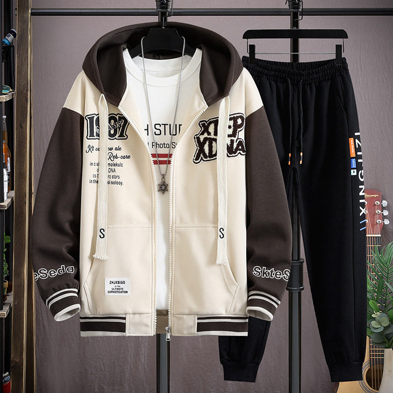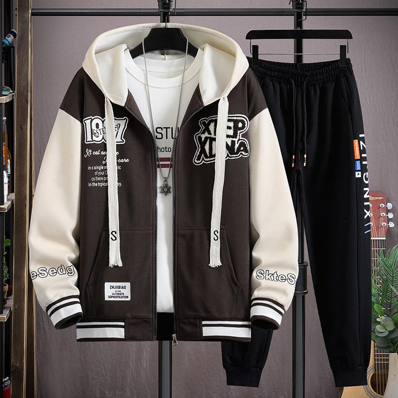 春季13青少年卫衣开衫套装男孩12岁15中学生潮流14大童棒球服外套