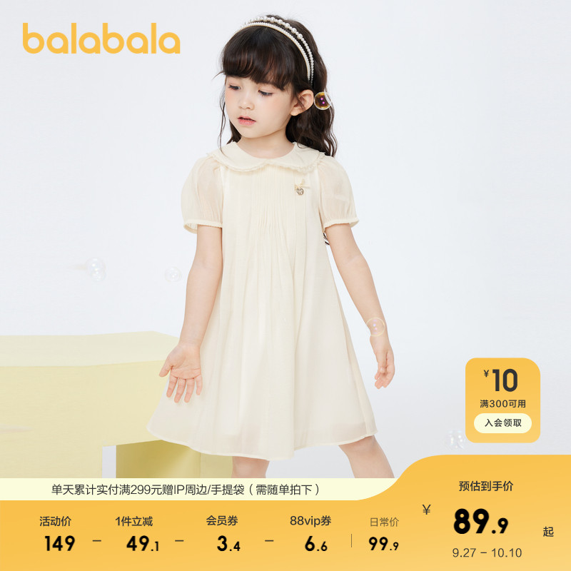巴拉巴拉童装女童裙子宝宝连衣裙夏装儿童A字裙文艺花边娃娃领甜