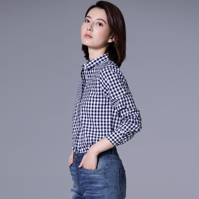 重要场合大码女装胖mm2025年新款韩版短款长袖职业格子衬衫上衣女