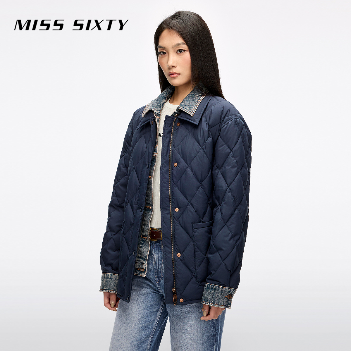【保暖90鸭绒】Miss Sixty2025秋季新款牛仔拼接羽绒外套女假两件