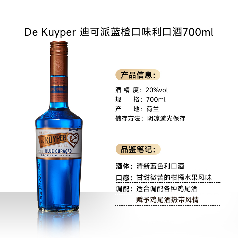 迪可派蓝橙味利口酒力娇酒烘焙酒鸡尾酒基酒荷兰进口洋酒