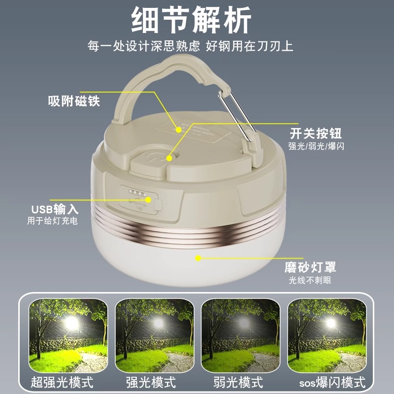 露营灯超长续航超亮迷你帐篷灯天幕暖黄便携户外野营灯充电照明灯