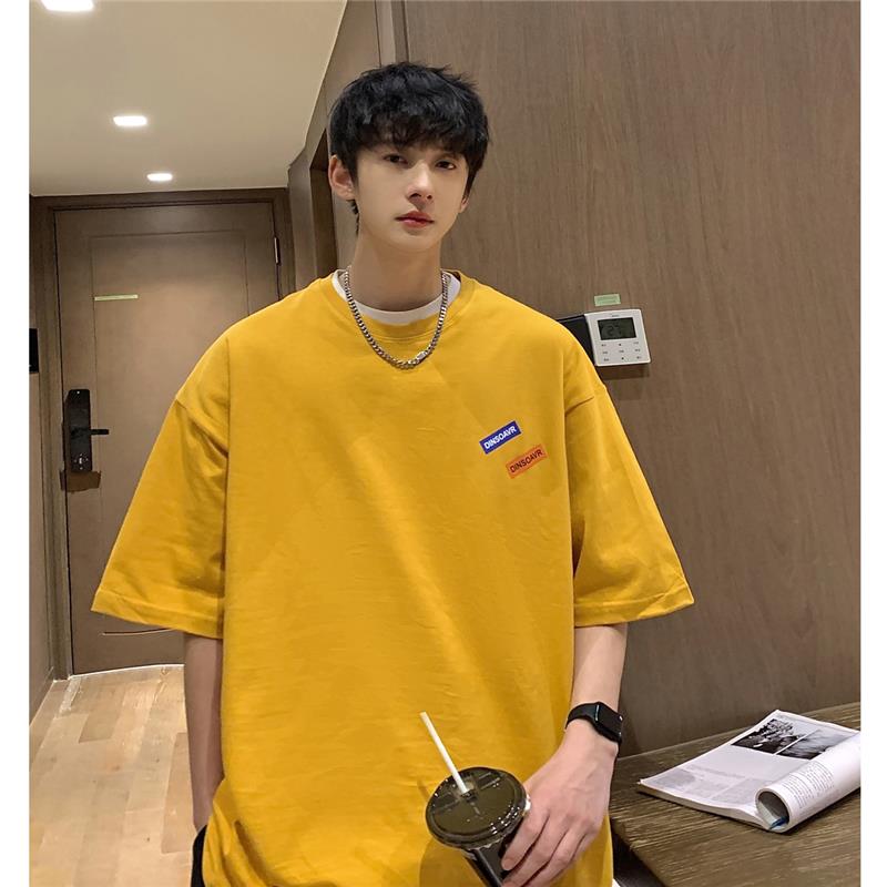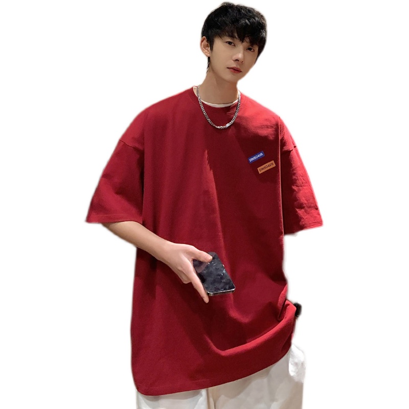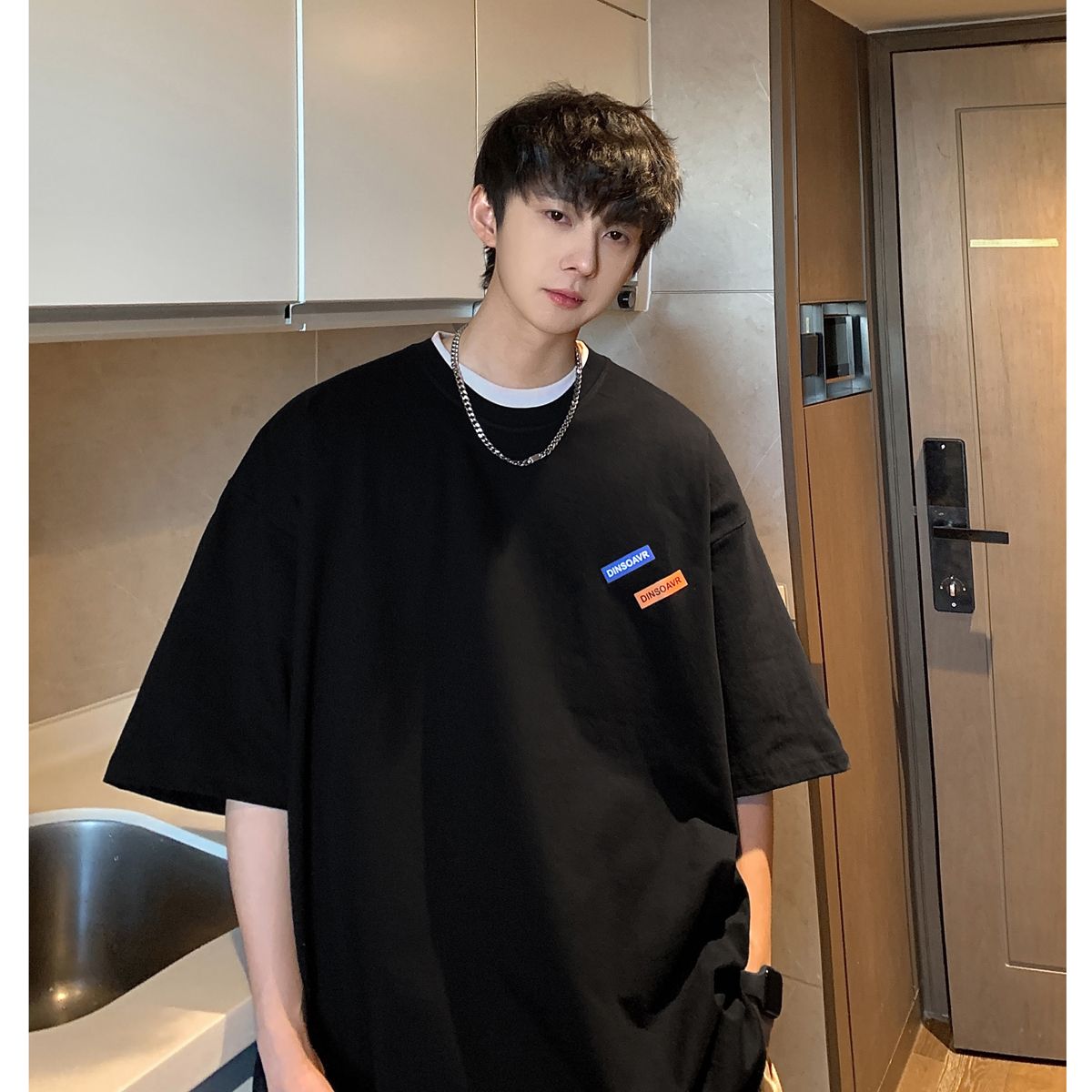 纯棉短袖t恤男夏季潮牌重磅男生半袖港风宽松大码初高中学生5分袖
