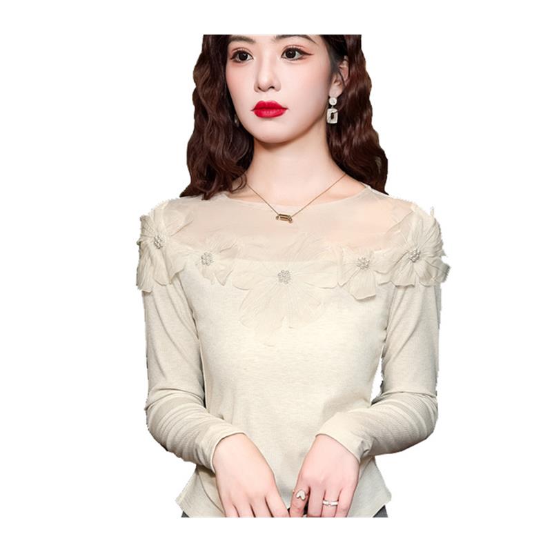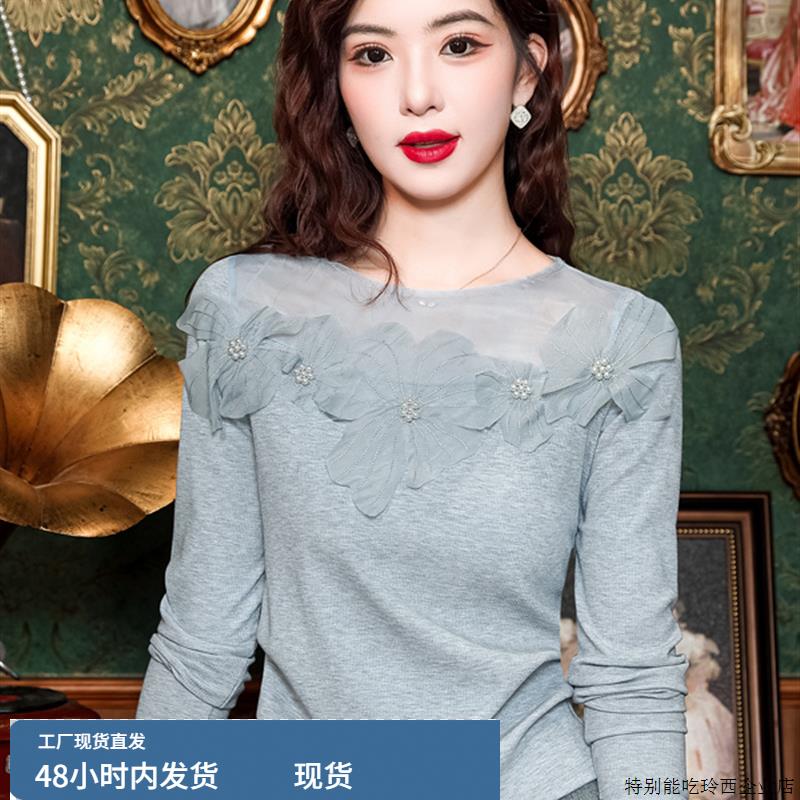 法式别致绝美长袖打底衫女秋装2025秋季新款网纱修身显瘦上衣t恤