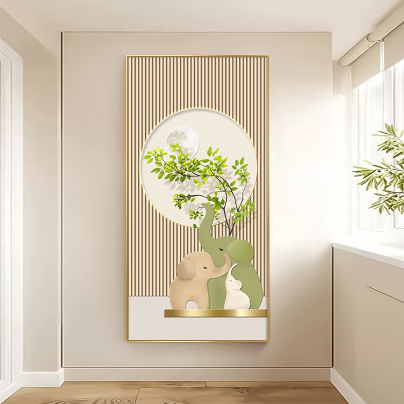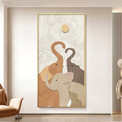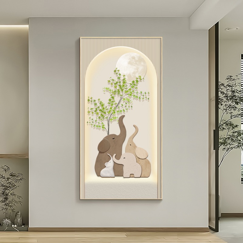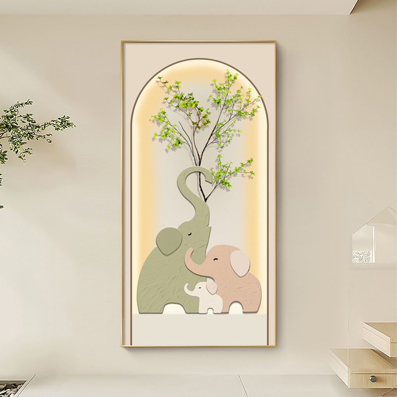 奶油风玄关大象装饰画轻奢高级感客厅墙面挂画寓意好走廊过道壁画