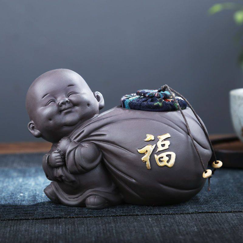紫砂茶叶罐小和尚粗陶密封罐陶瓷红茶普洱小号储存罐家用醒茶罐