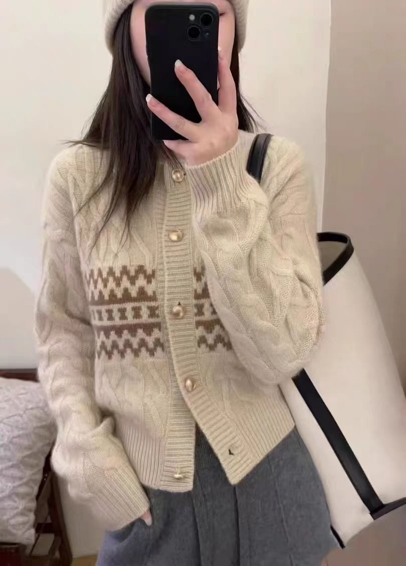 秋冬新款加厚100%纯羊毛开衫女圆领针织宽松毛衣外套