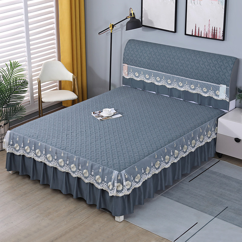 简约夹棉床裙单双人席梦思床防尘罩套床笠纯色全包床头罩四季通用