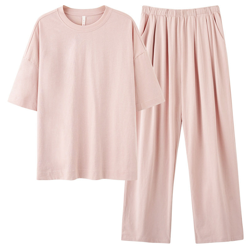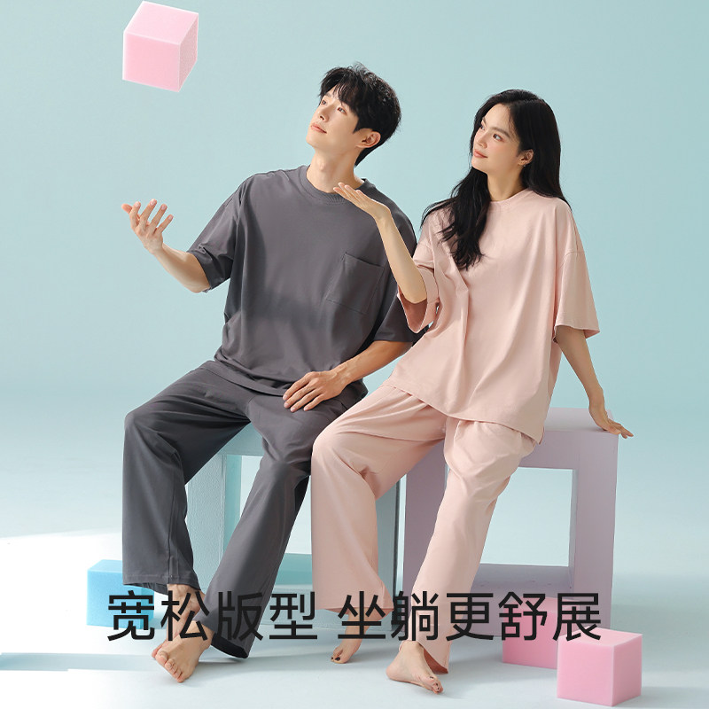 【重磅冰瓷棉】轻运动可外穿春夏季短袖长裤情侣家居服女纯棉睡衣