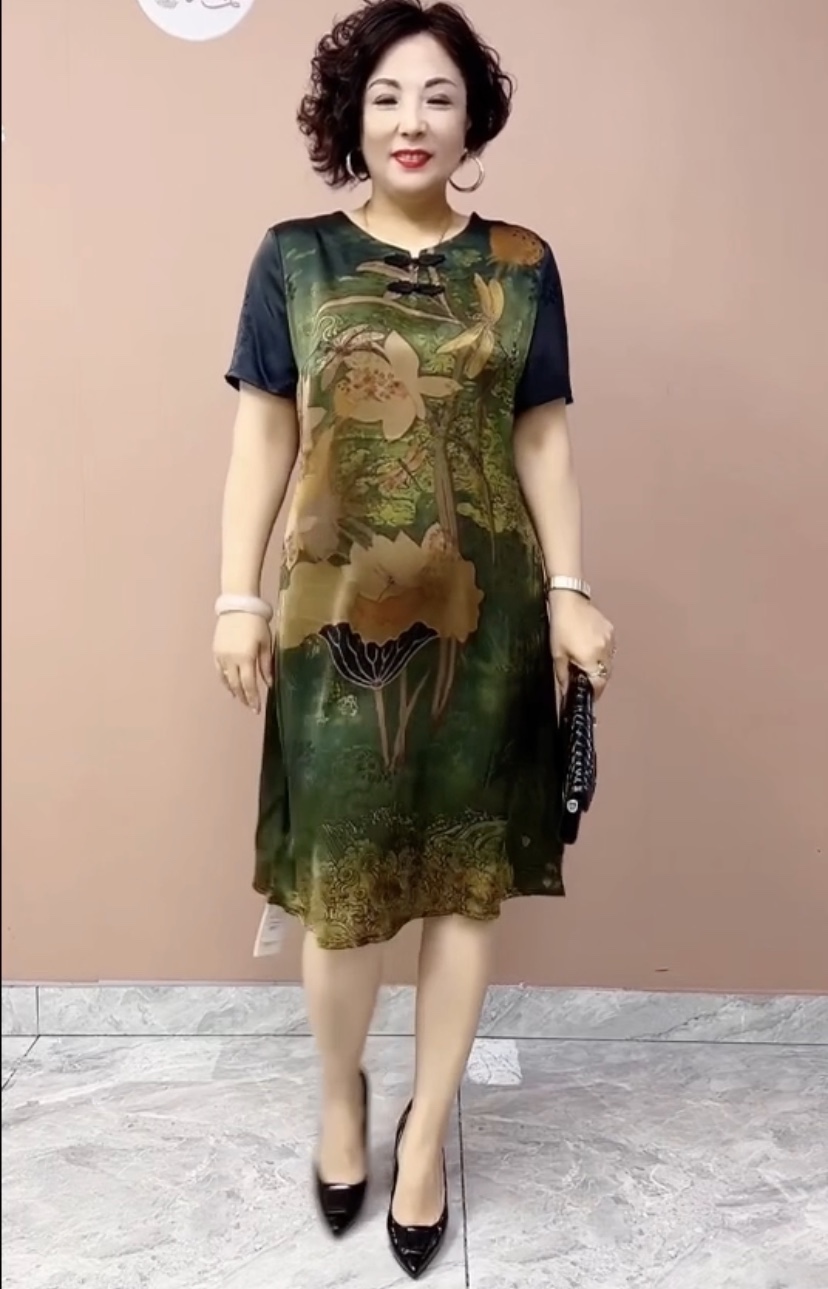 夏季新款短袖真丝旗袍连衣裙中老年妈妈装宽松遮肉显瘦过膝长裙子