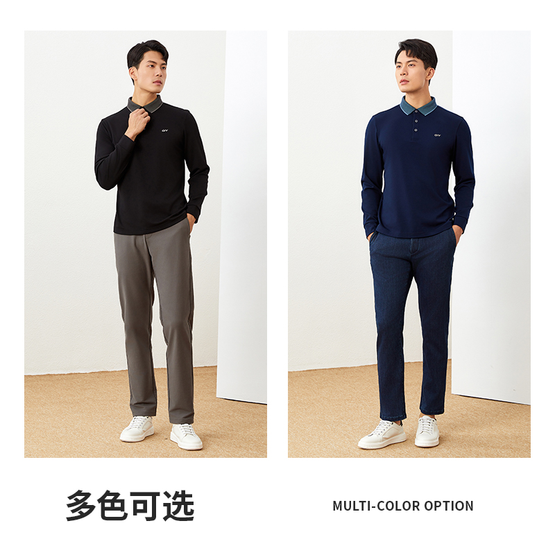 【含羊毛】金利来GY秋冬季经典款长袖POLO衫男保暖男士翻领上衣