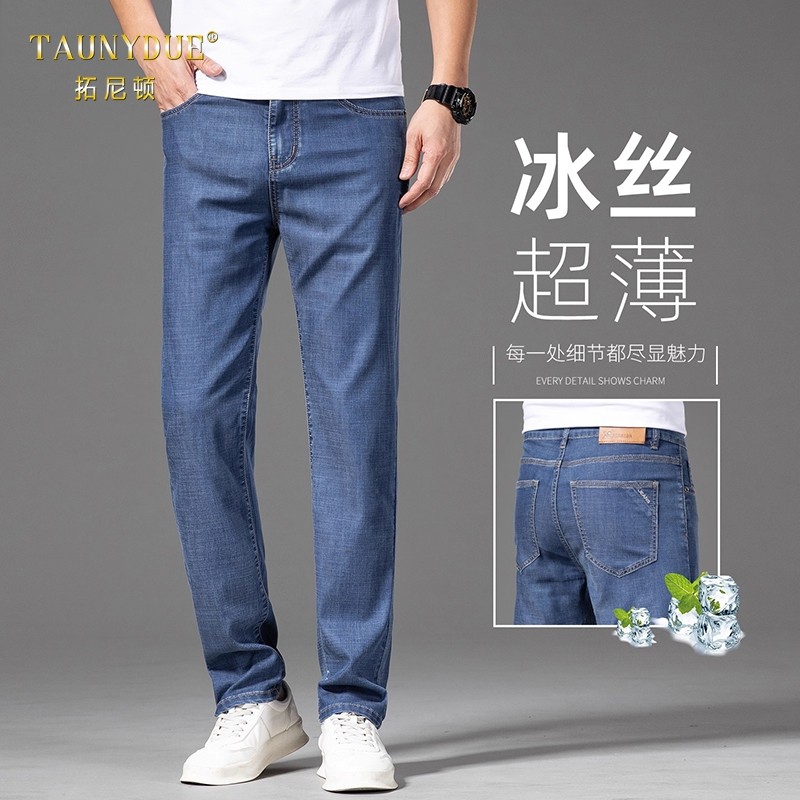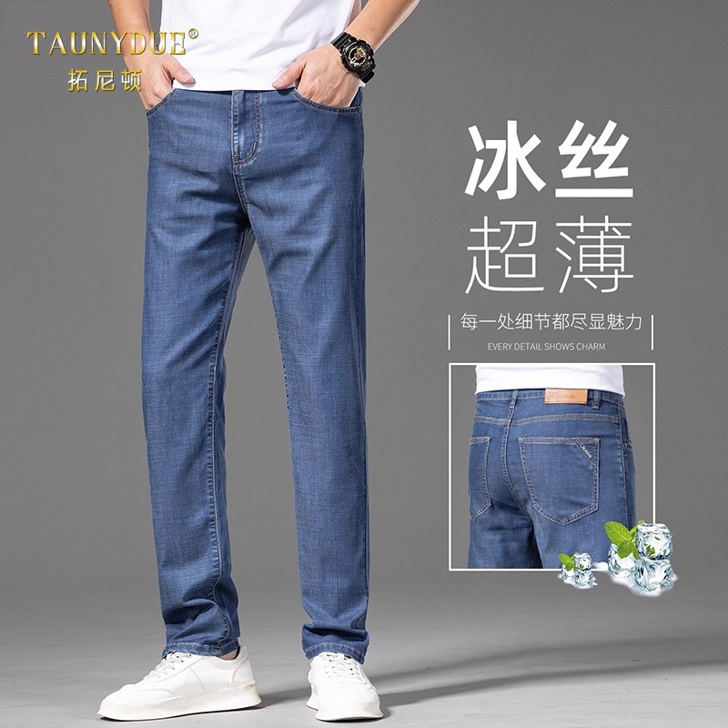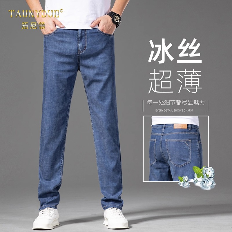 牛仔裤男夏季薄款直筒2025新款高端蓝色休闲冰丝超薄小直筒裤子软