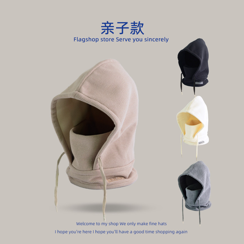 儿童帽子围脖一体防风防寒骑行中大童保暖头套男女加厚秋冬亲子帽