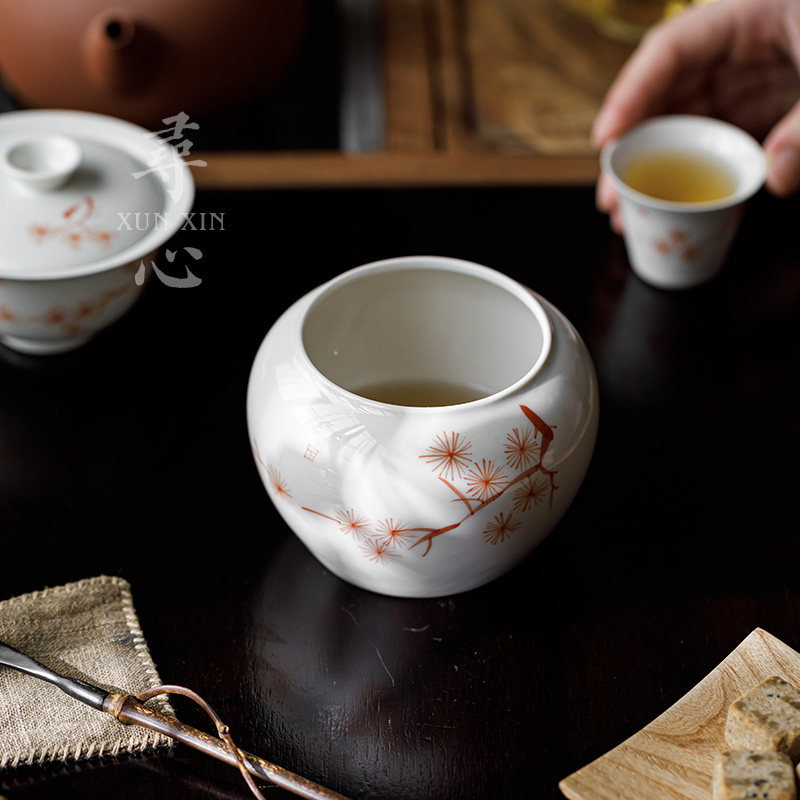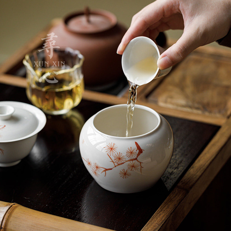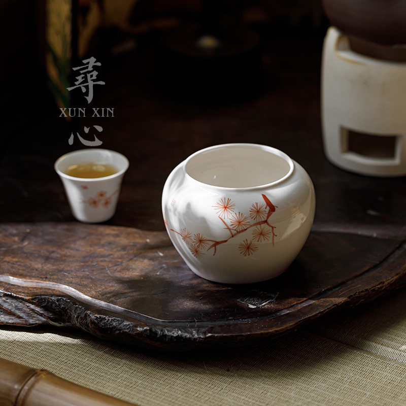 寻心草木灰圆桃建水陶瓷茶洗家用水盂小号杯洗缸废水缸茶道零配件