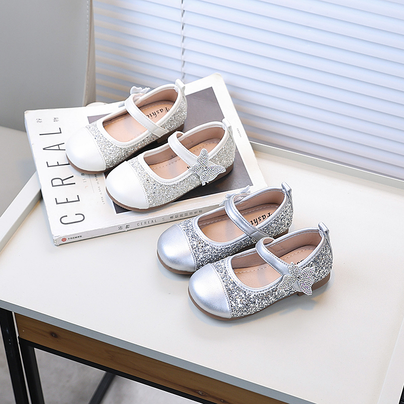 春秋季女童亮片公主风皮鞋