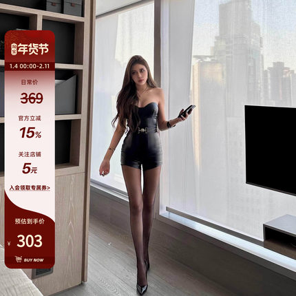 LUV2SHY 现货 巨显身材 pu皮胸垫抹胸金属腰带修身连体衣短裤性感