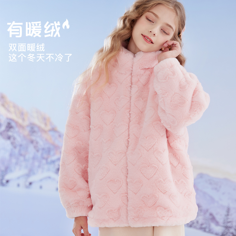 玉桂狗女童外套2025秋冬新款儿童毛毛衣宽松毛绒宽松洋气外穿童装