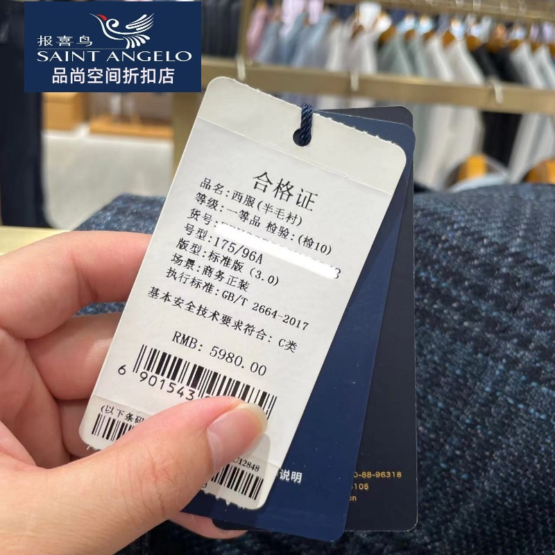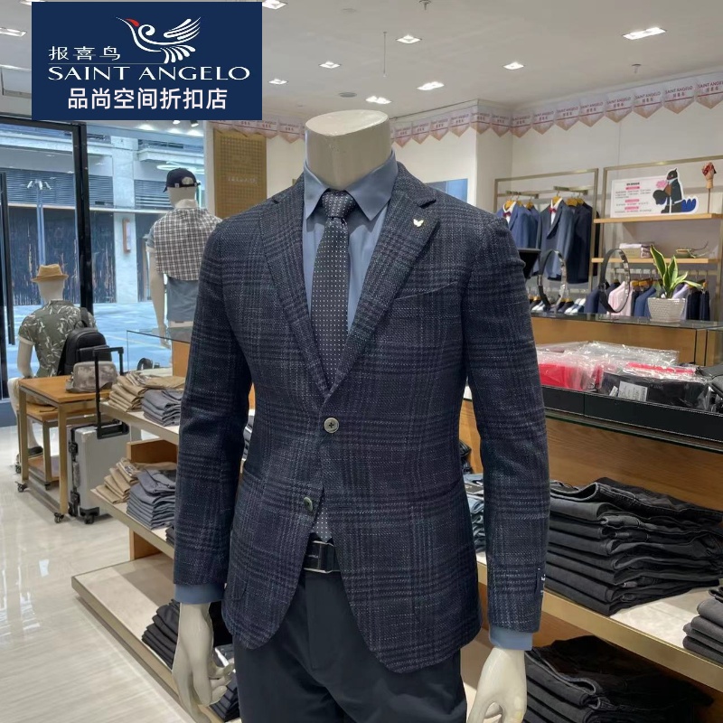 报喜鸟男士休闲单西蓝色格纹【意大利进口面料】山羊绒秋季双开衩