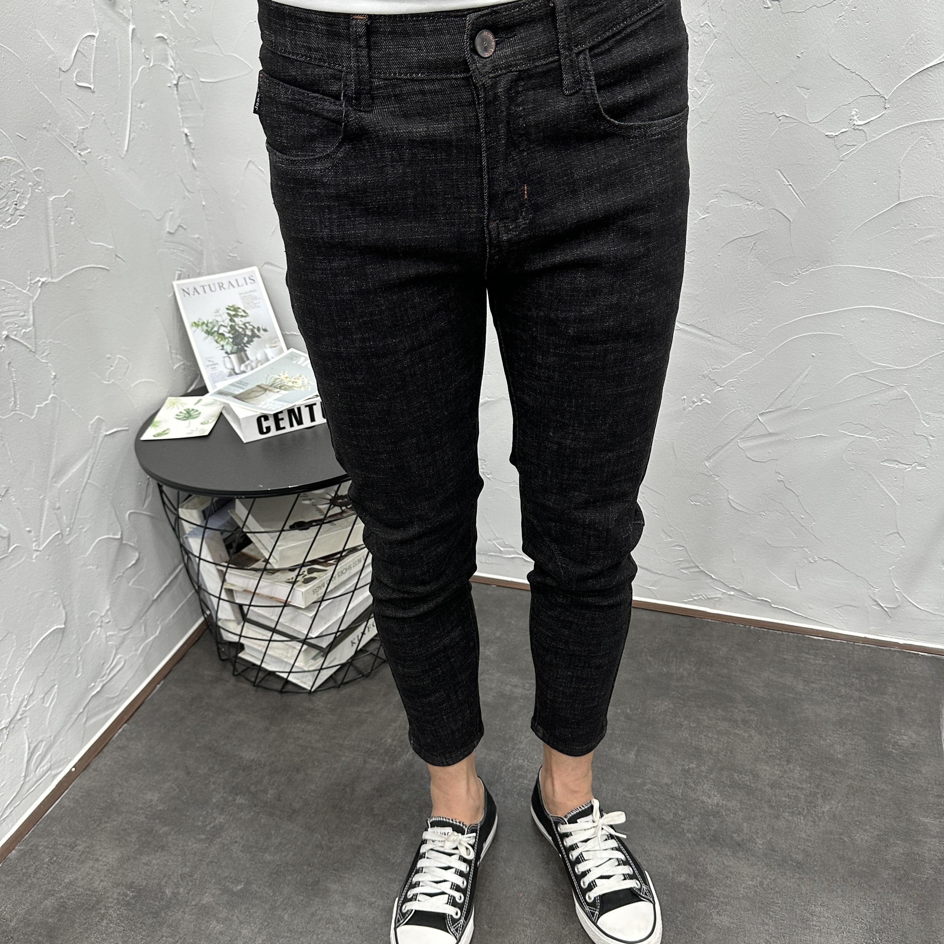 原色黑弹力修身小脚九分牛仔裤男夏秋新潮流休闲百搭时尚经典长裤