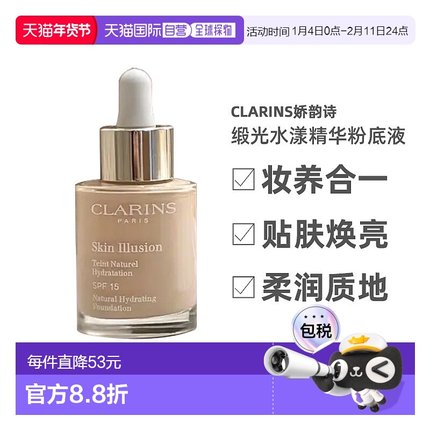 欧洲直邮Clarins娇韵诗缎光水漾精华粉底液30ml #102.5新款正品
