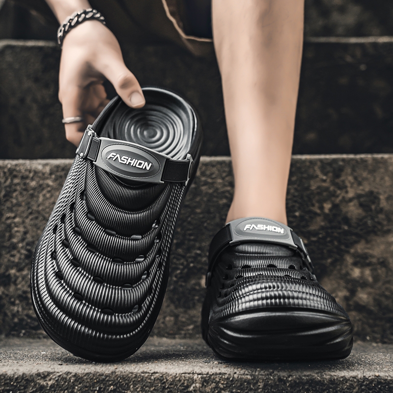 防滑拖鞋男夏季外穿软底包头凉鞋户外休闲运动大码沙滩洞洞鞋厚底