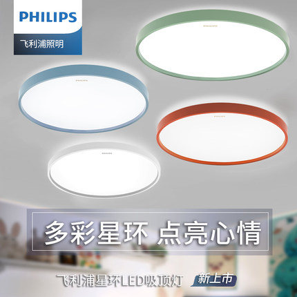 飞利浦轻奢女儿房灯2024新款卧室灯具超薄书房餐厅LED吸顶灯星环