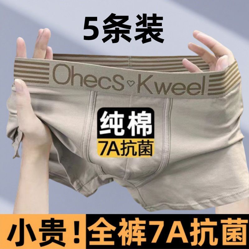5条装男士内裤正品CK纯棉9A抗菌裆青少年男运动舒适透气平角短裤