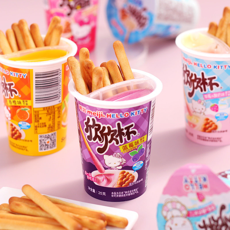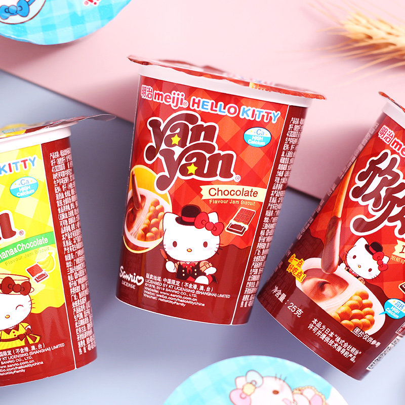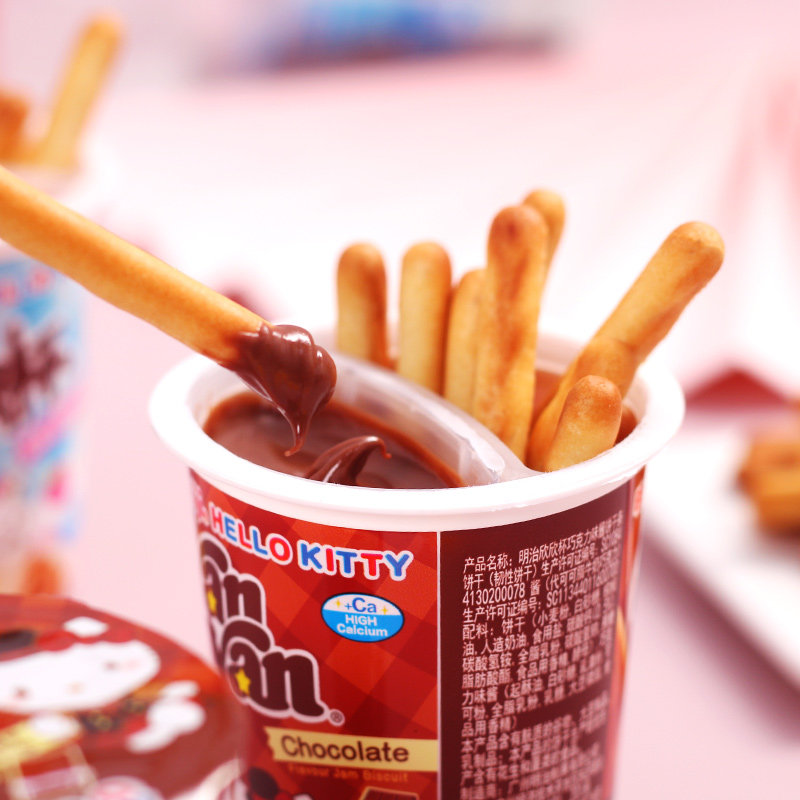 meiji/明治Hello Kitty欣欣杯巧克力果酱手指饼干25g儿童宝宝零食