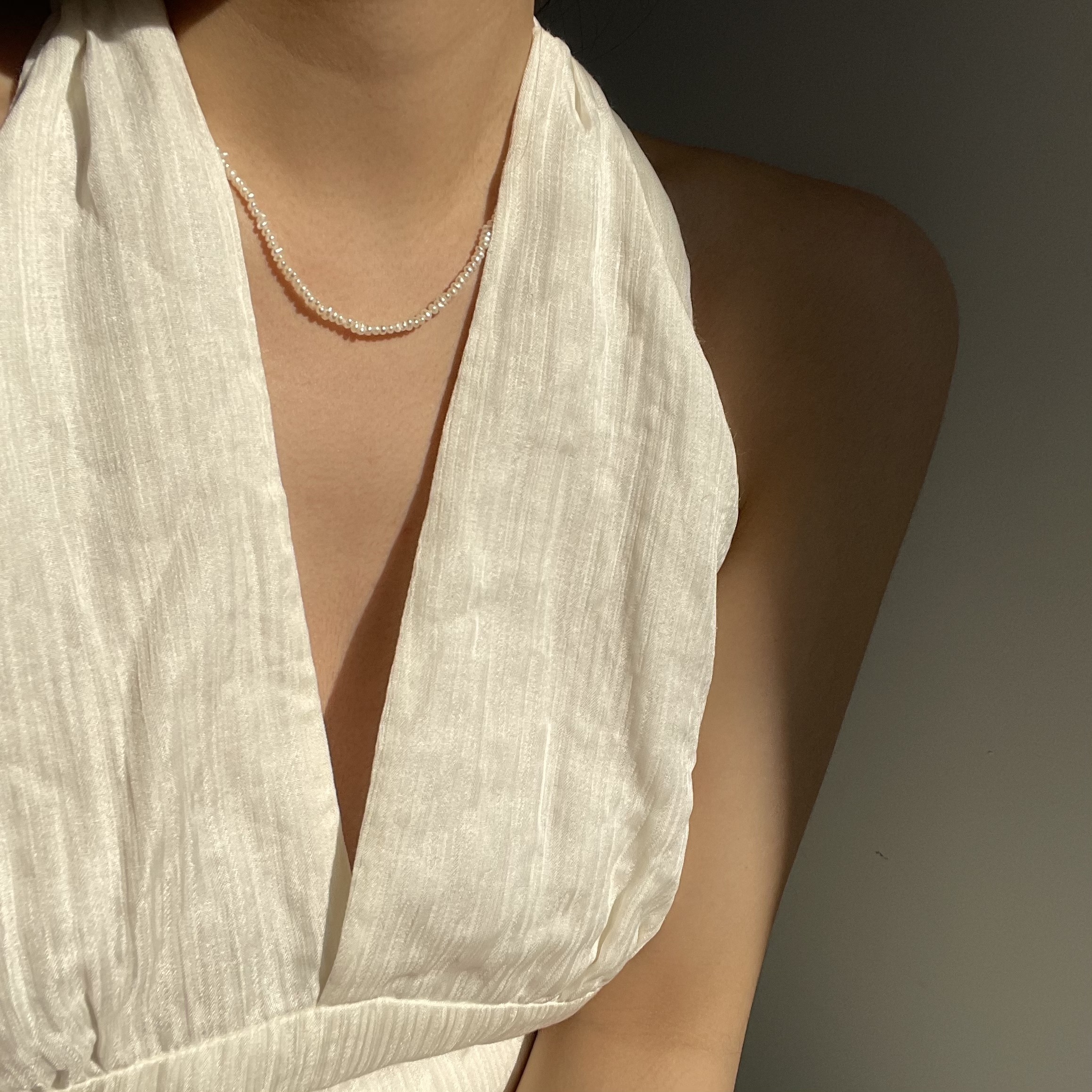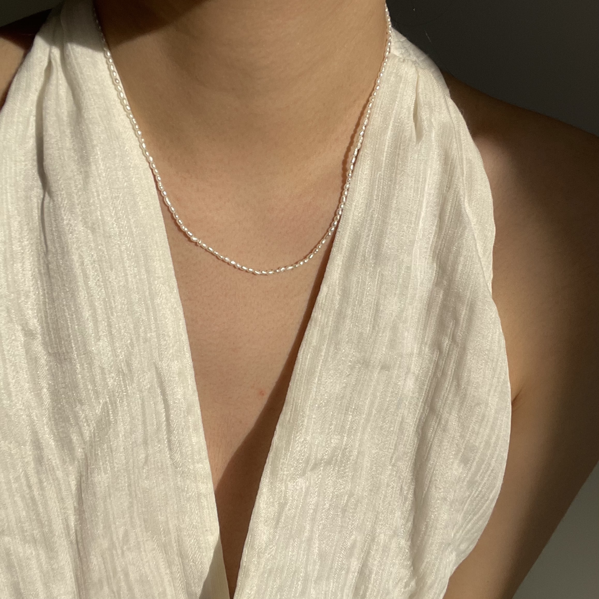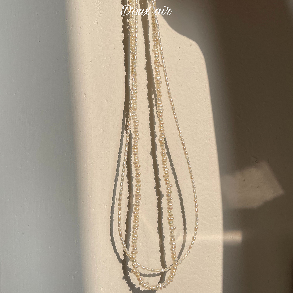 DouxAir天然小米粒珍珠项链14k包金细致法式优雅锁骨链百搭经典