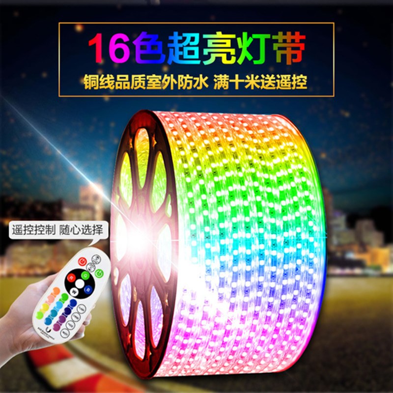 七彩遥控灯带led灯条客厅吊顶220V线形灯户外防水5050贴片rgb彩灯