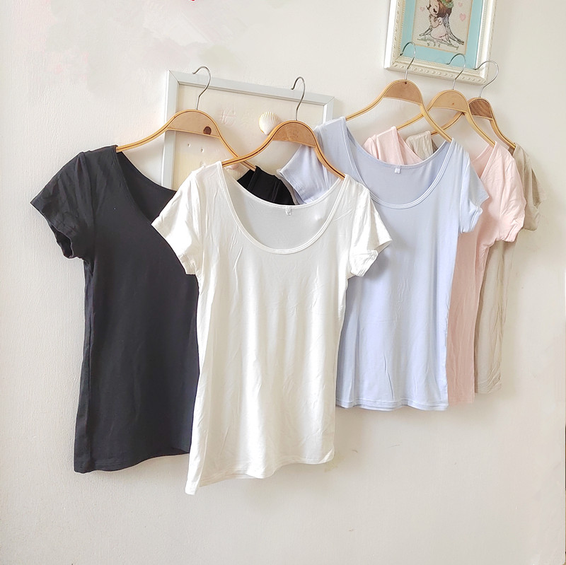 日单腋下吸汗t恤衫女士圆领短袖上衣夏季超轻薄女士舒适透气打底T