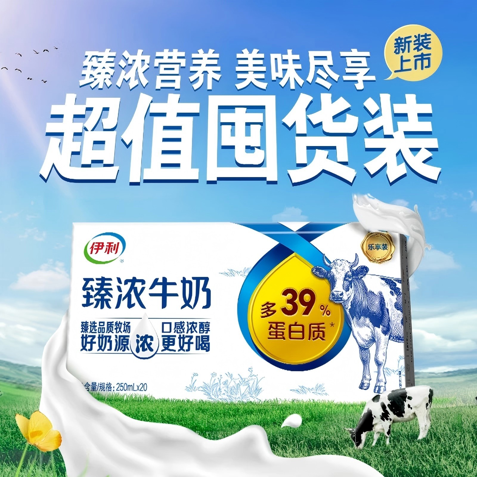 1月产伊利臻浓牛奶无菌砖250ml*20盒整箱装儿童学生成人早餐牛奶