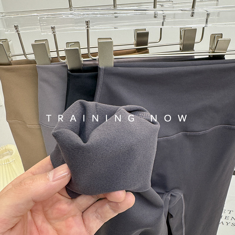 LULU同款加绒瑜伽裤女秋冬新款高腰提臀运动裤高弹薄绒修身健身裤