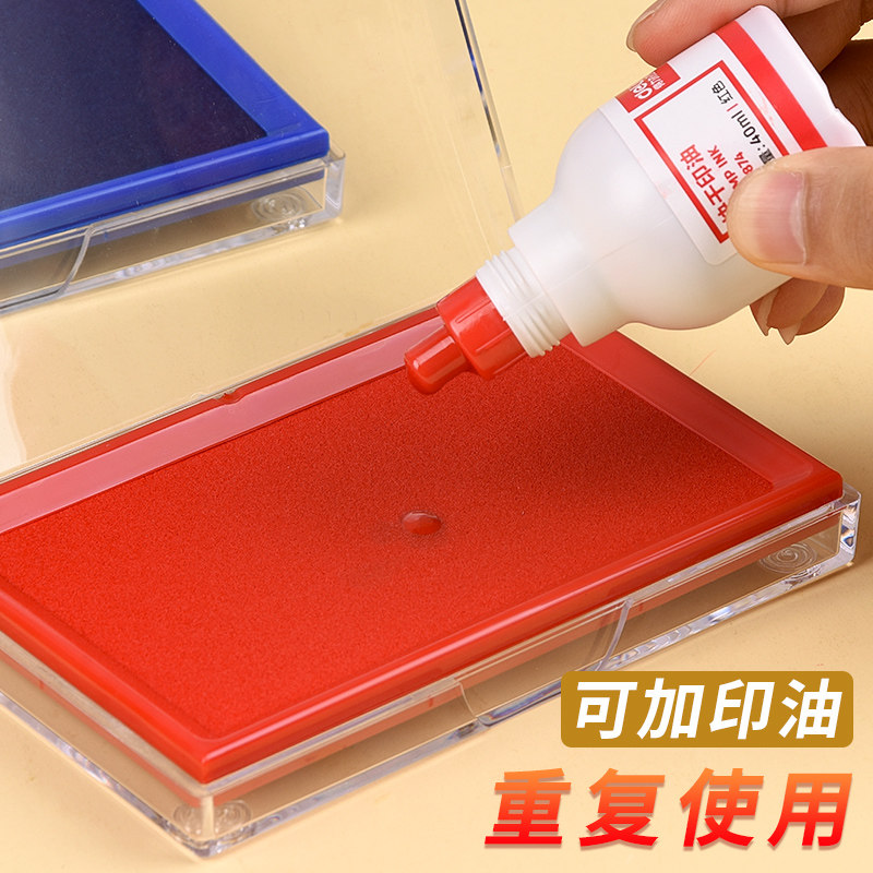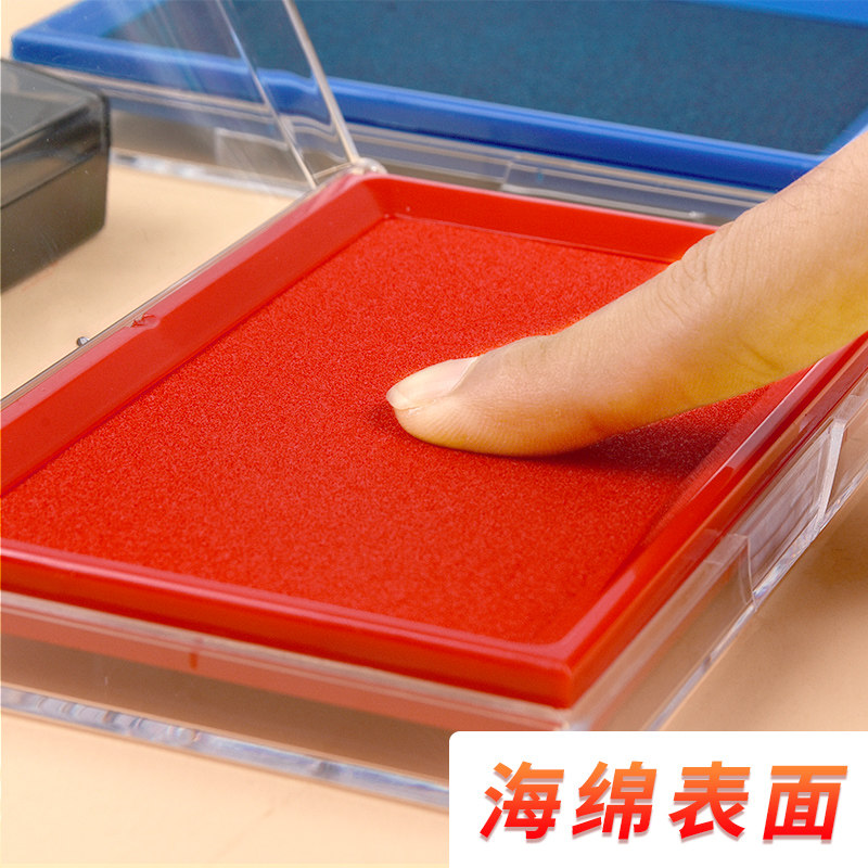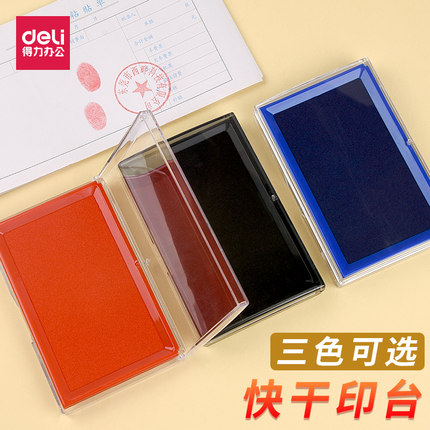 得力红色印台9864大号方形快干印泥蓝色办公盖章手印印泥盒海绵黑色印台速干长方形印章台会计用品文具