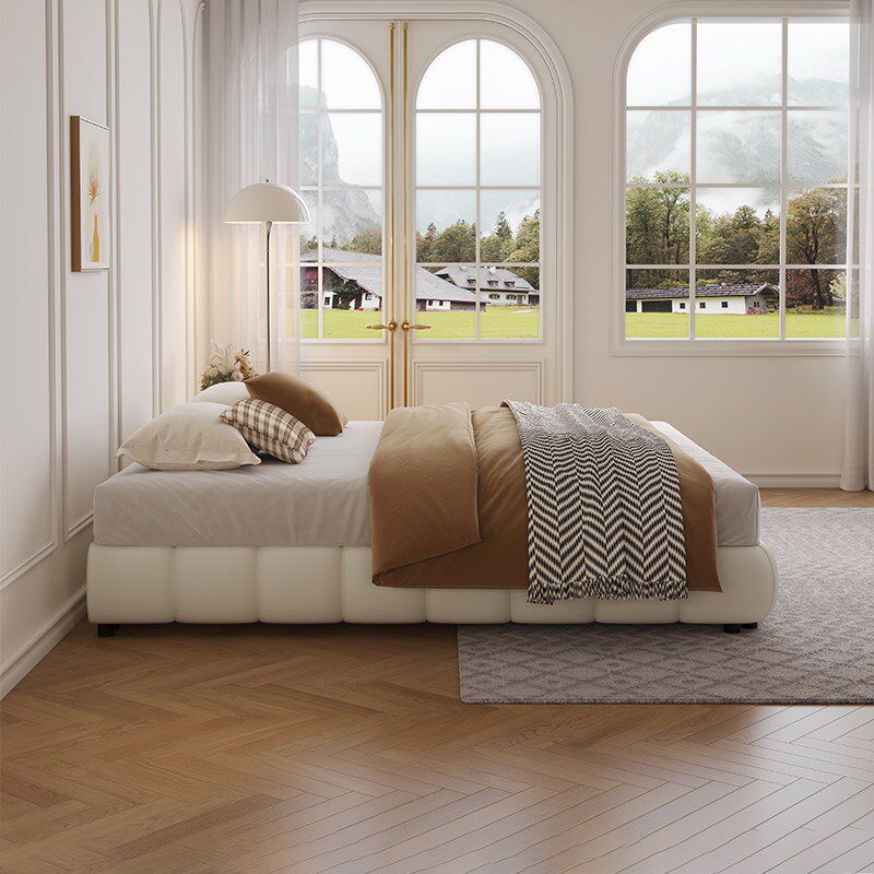 新款皮床现代简约1米5双人小x户型公寓软包无床头双人榻榻米泡芙