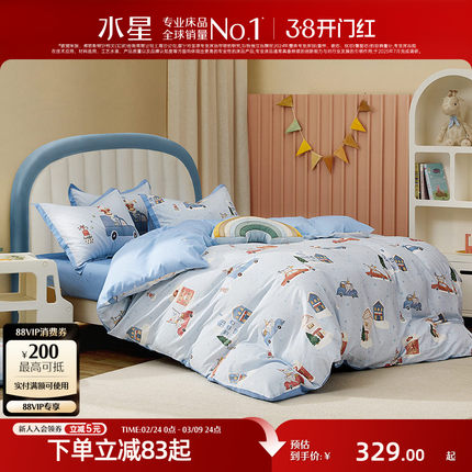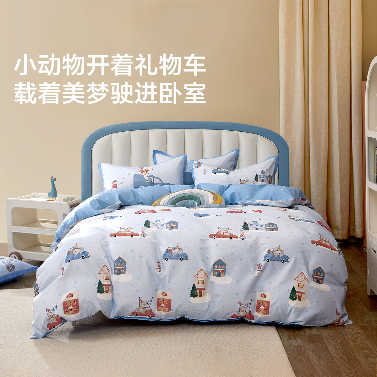 水星家纺儿童全棉三/四件套母婴A类抑菌纯棉套件卡通被套床单床品