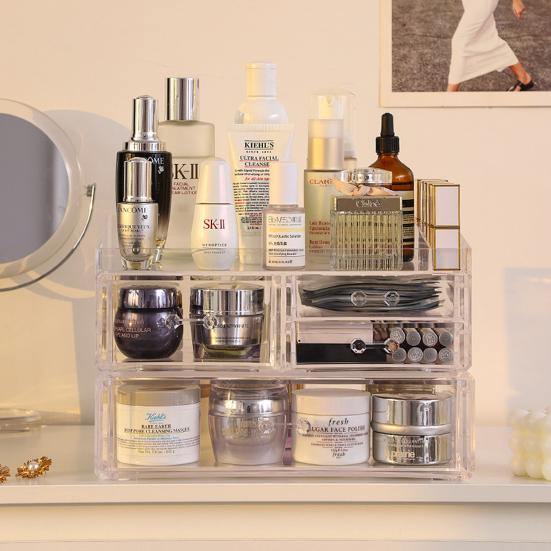 化妆品收纳盒亚克力梳妆台桌面置物架口红护肤品整理抽屉式高级感