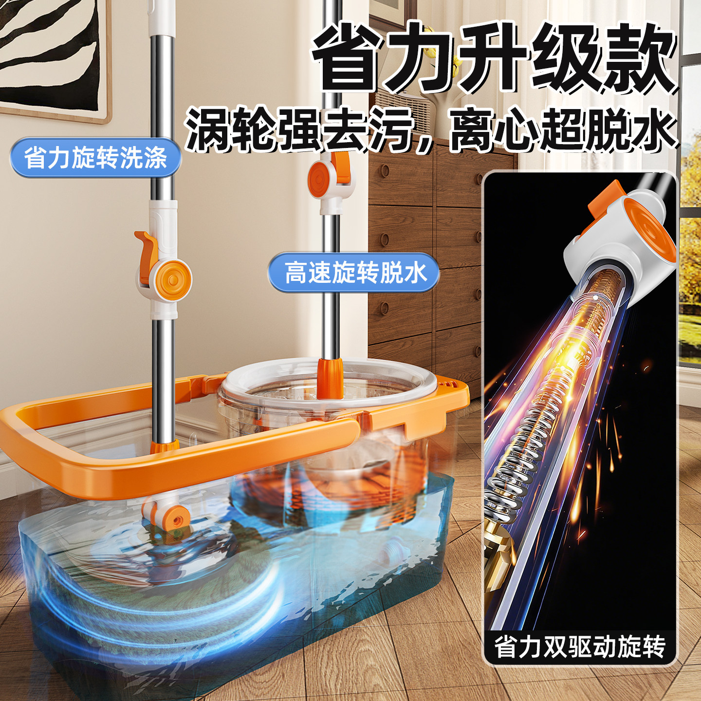 拖把桶旋转一拖净免手洗甩干家用