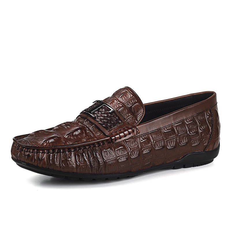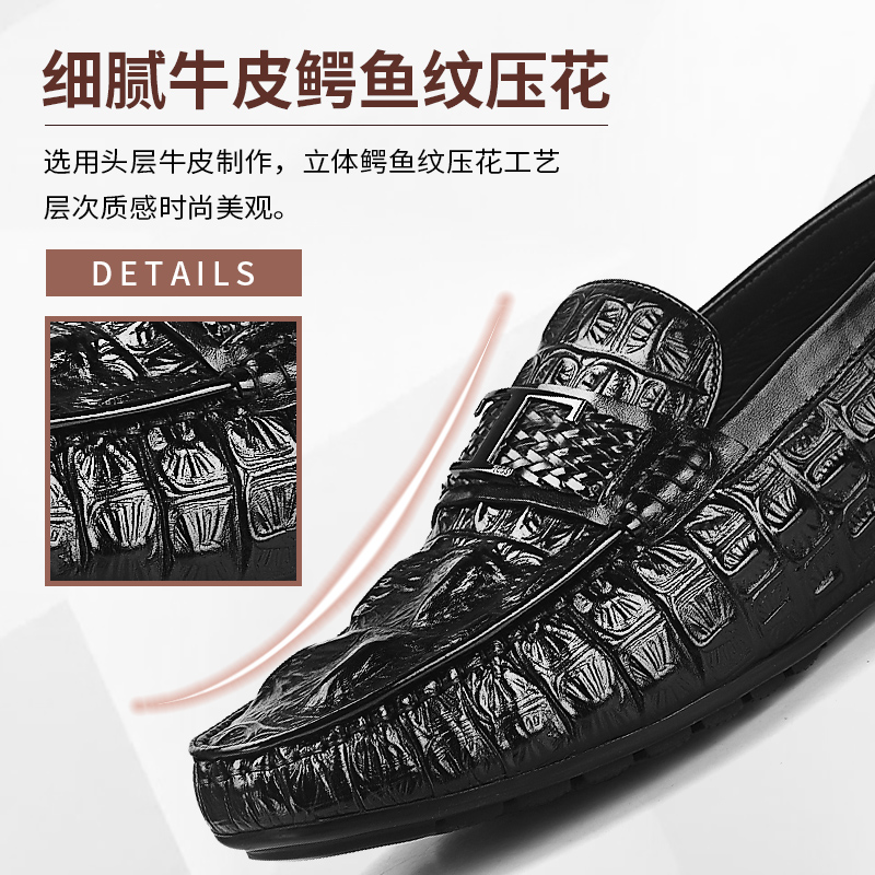 VQGT英伦鳄鱼纹豆豆鞋男休闲皮鞋真皮一脚蹬懒人鞋牛皮男鞋乐福鞋
