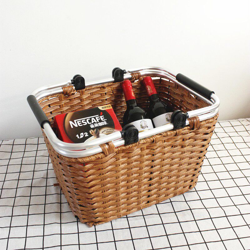 手工编织野餐篮户外郊游手提篮子水果蔬菜K购物篮藤编采摘篮车载