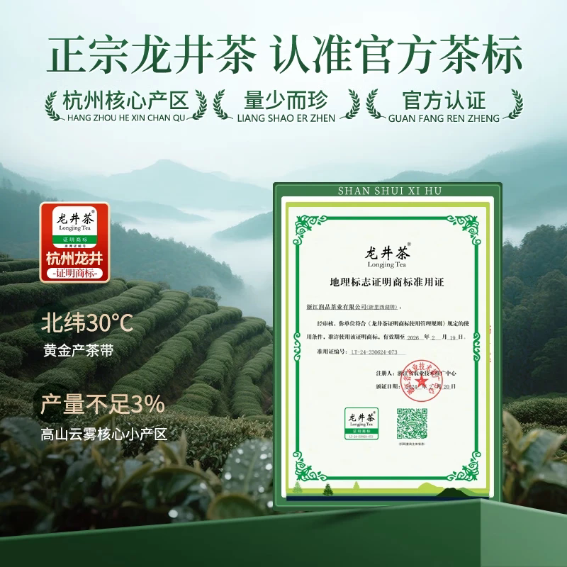 山水西湖 龙井茶 特级绿茶明前新茶豆香嫩芽250g茶叶年货礼盒