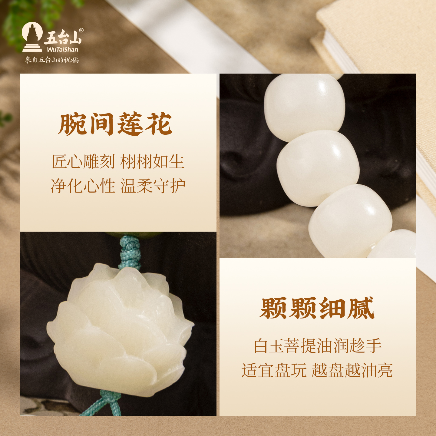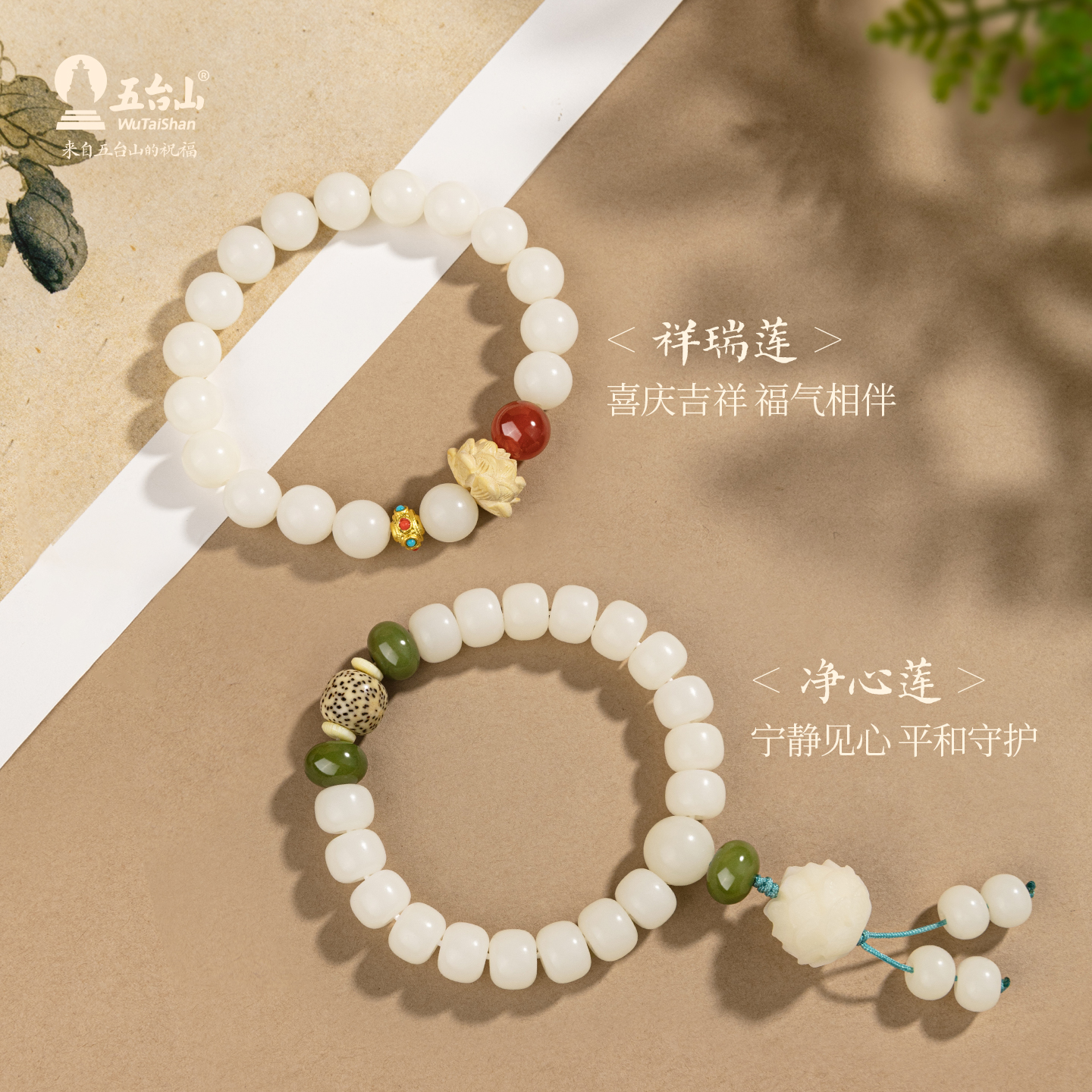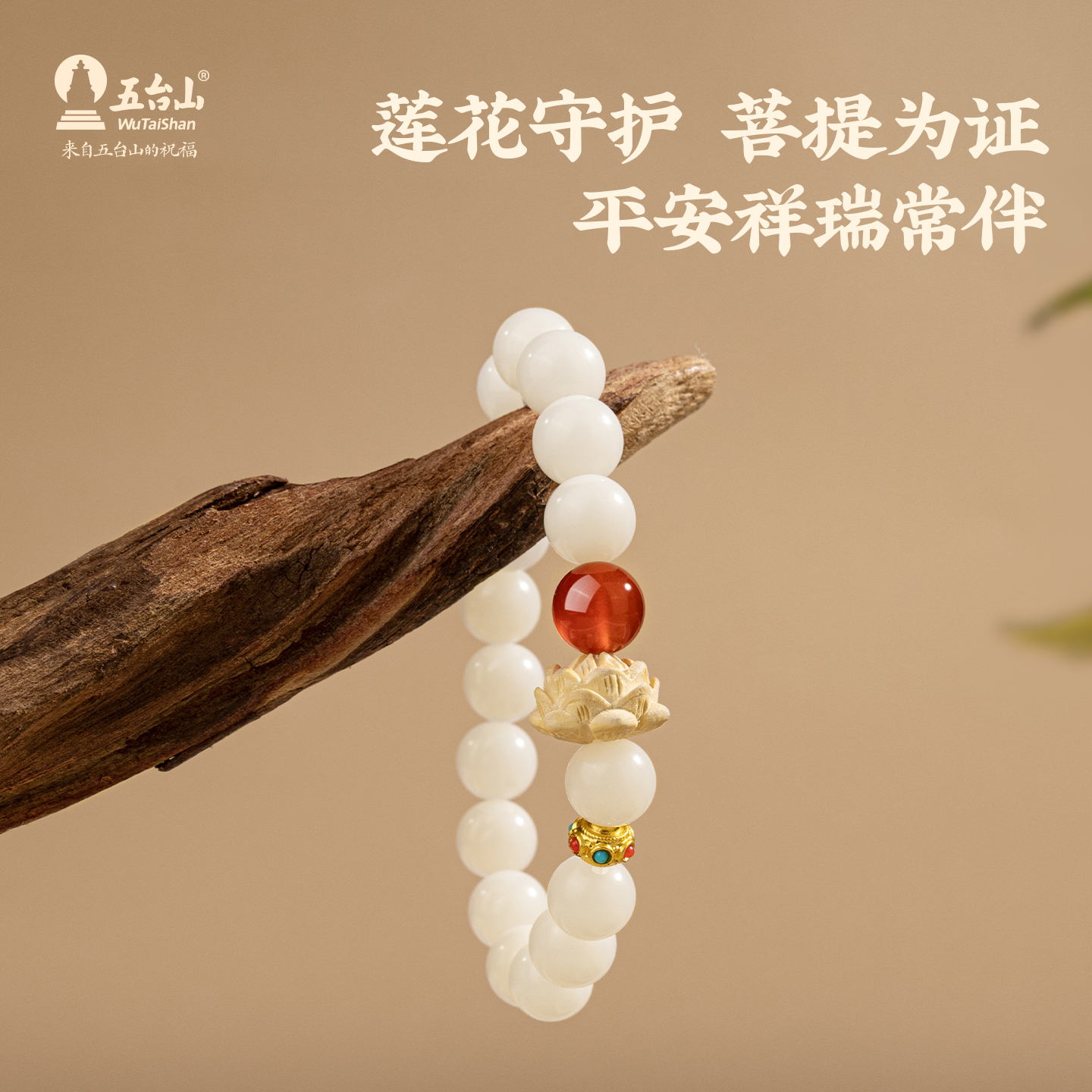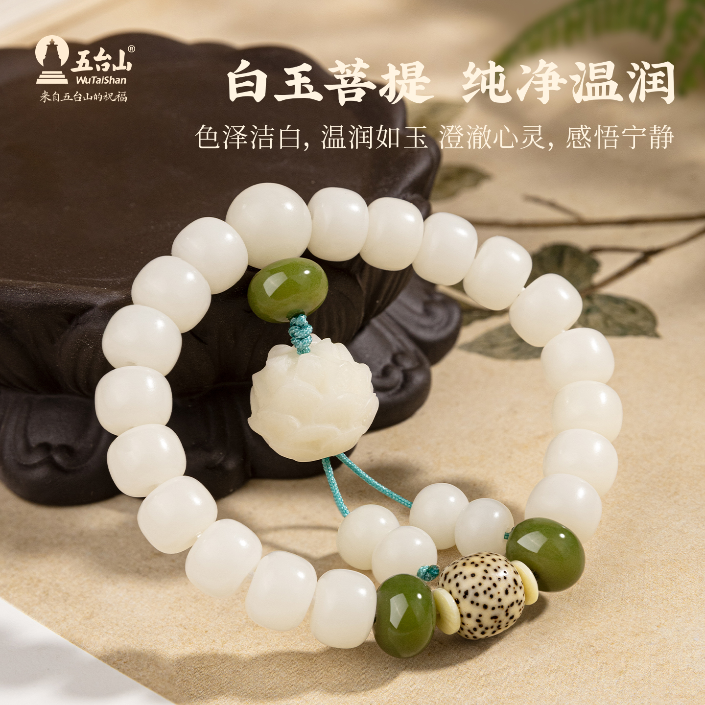 五台山白玉菩提手串黄杨木莲花星月菩提玛瑙转运珠文玩盘玩手链女