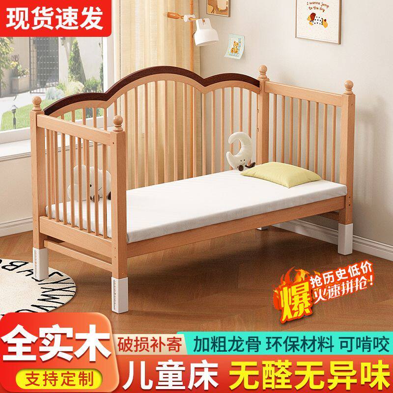 胡桃木儿童拼接床实木婴儿床大床升降护栏可调节腿加宽床边宝宝床