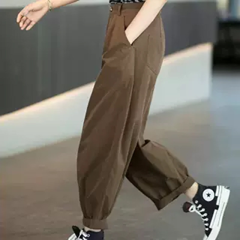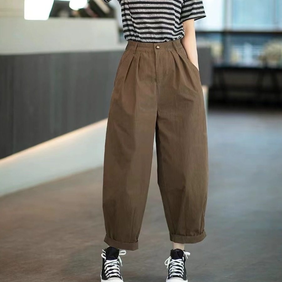 品牌清仓撤柜复古文艺宽松全棉哈伦裤女休闲高腰显瘦工装萝卜裤潮