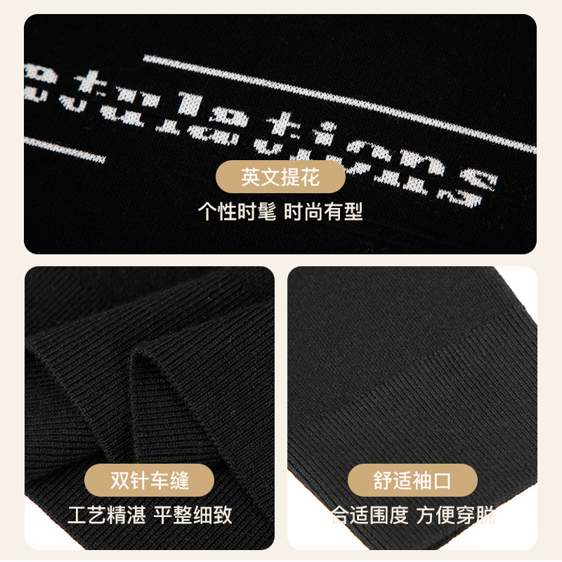 才子男装圆领羊毛针织衫男士2025秋冬季打底内搭撞色提花休闲毛衣